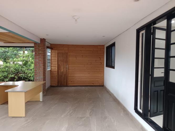 - Varanda com garagem em ambiente aconchegante, com vista para as árvores